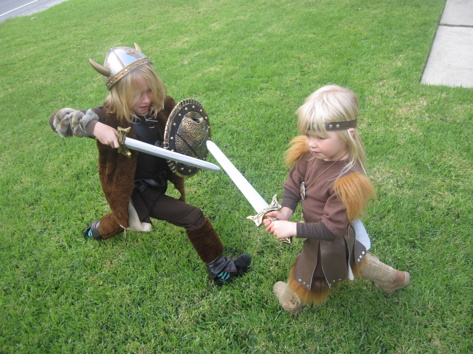 we didn't have time to fix our own costumes but our kids got a Viking make over..